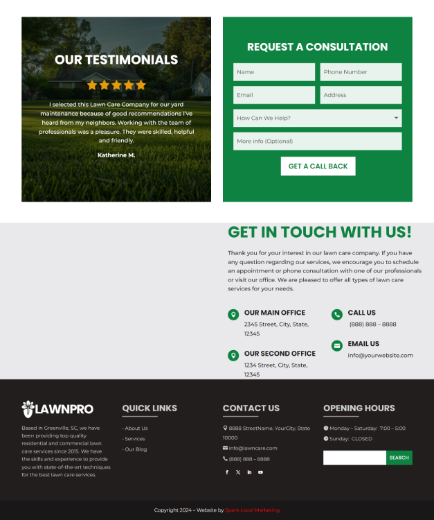 Whether you need a new website, a refreshed online presence, or a robust marketing plan, Spark Local Marketing has the expertise and experience to elevate your business. Trust us to focus on quality and excellence as we help you achieve success.
